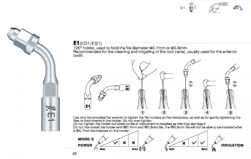 Doporučuje se k čištění a irigaci kořenového kanálku, obvykle se používá pro přední zuby.