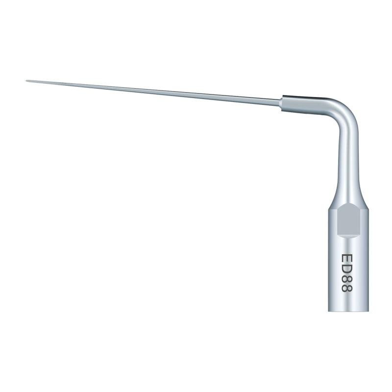 Koncovka ED88 je navržena s extrémně tenkou špičkou ve tvaru meče, která vytváří půlkruhový žlábek o úhlu 90 stupňů na vnitřní stěně zlomeného nástroje. Lze ji předem zakřivit, aby se přizpůsobila zakřivení kanálku. Aktivujte ultrazvuk plochým povrchem namířeným na zlomený nástroj z vnitřní stěny kanálku.