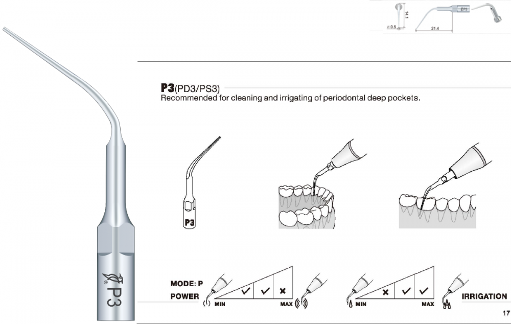 Doporučuje se k čištění a irigaci hlubokých parodontálních kapes.