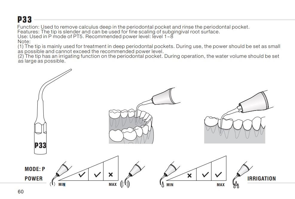 (2) Špička má funkci irigace parodontální kapsy. Během provozu by měl být objem vody nastaven na co největší možnou hodnotu.