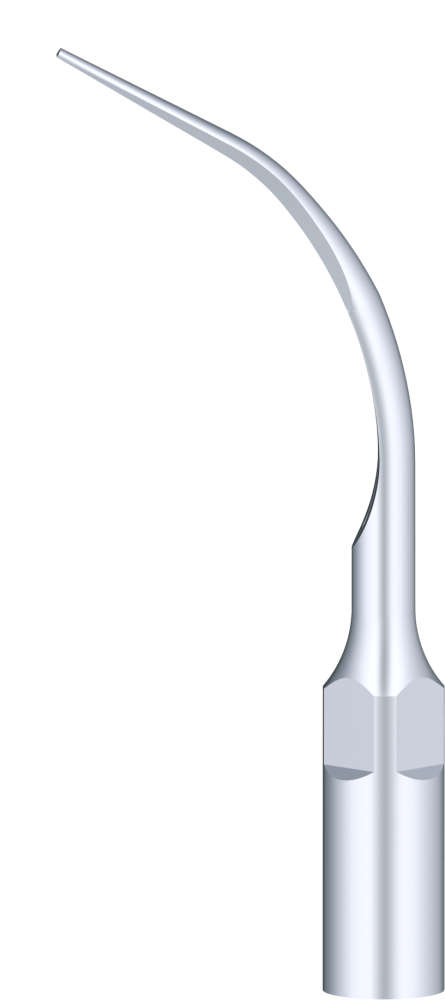 Tenká a ostrá koncovka, doporučená pro čištění a irigaci subgingiválních usazenin.