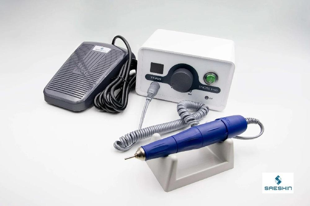 Uhlíkový stolní laboratorní mikromotor. Jednotka Strong B140D s motorem S105LN (45k) včetně rychlostního nožního pedálu. Vysoký točivý moment při nízkých otáčkách. Maximální otáčky 45 000. Kroutící moment 4,5 Ncm. Obousměrný provoz. Zobrazení chybových hlášek. Řízení otáček pedálem nebo na jednotce.